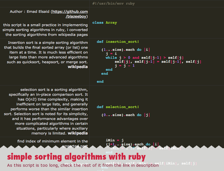 The example uses three ruby array methods to reorganize elements in the array.